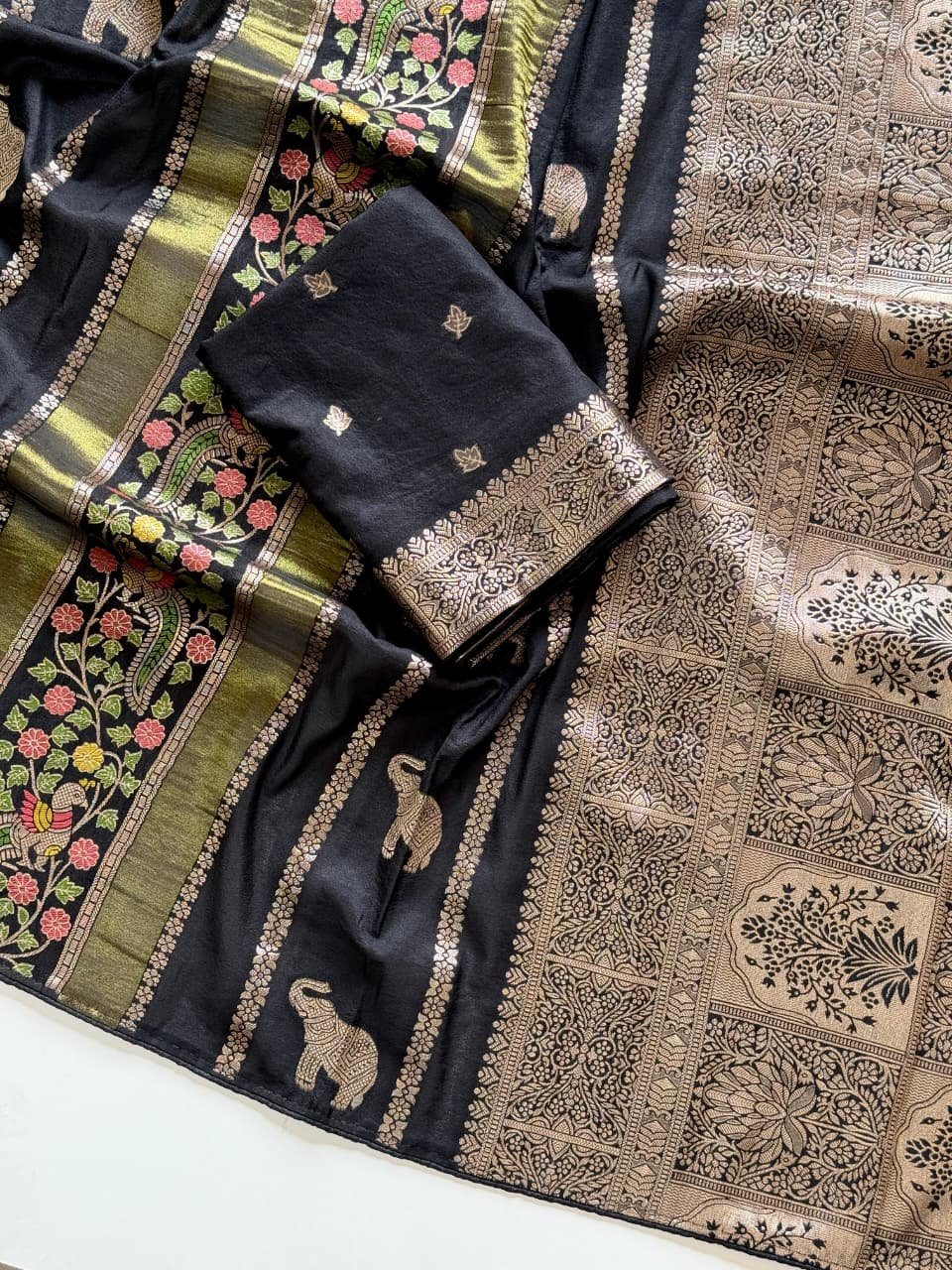 – Peacock and Elephant motifs with Minakari Jaal