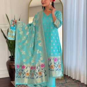 Don’t miss out on this stunning Banarasi suit. Order now and experience the beauty of traditional Indian fashion.