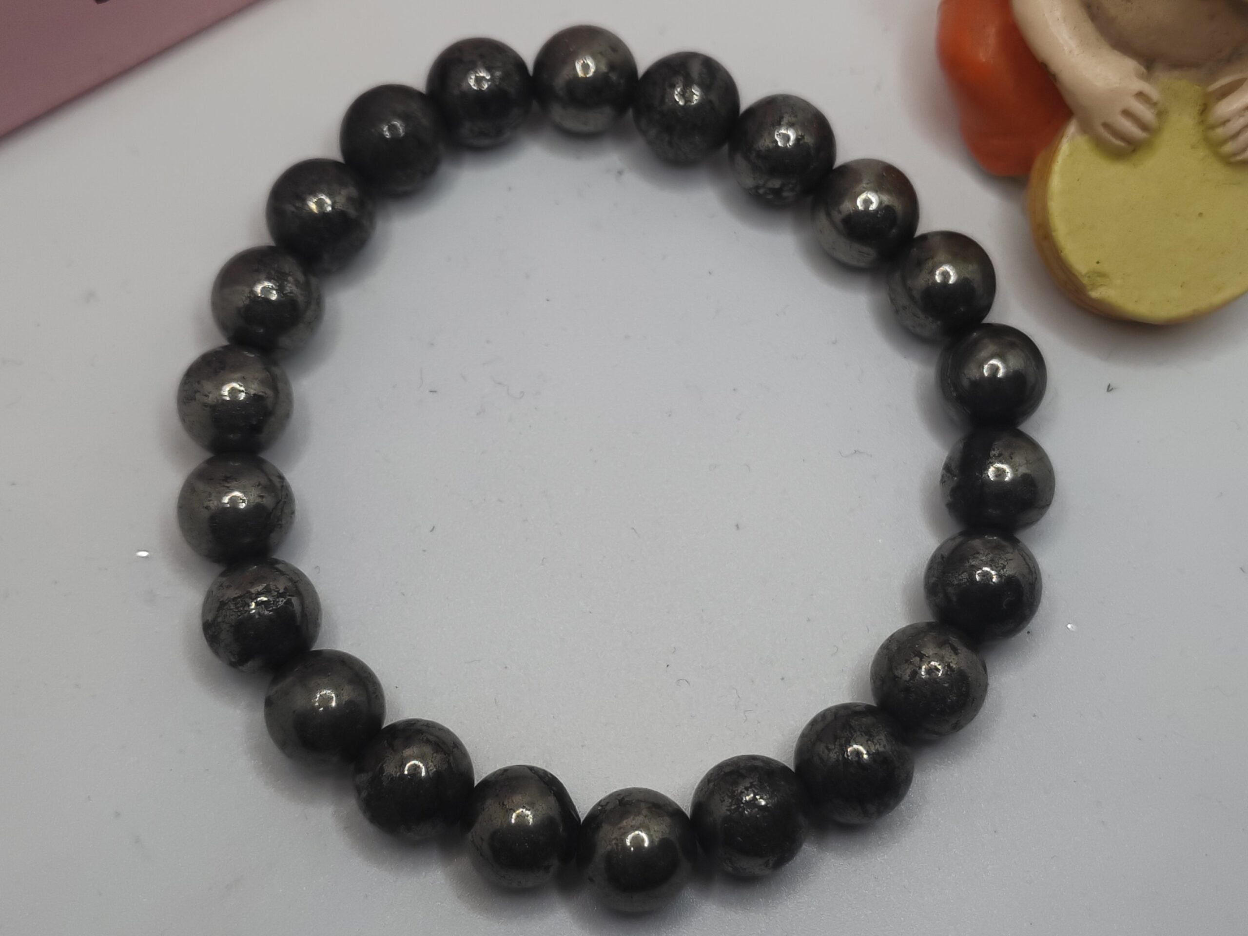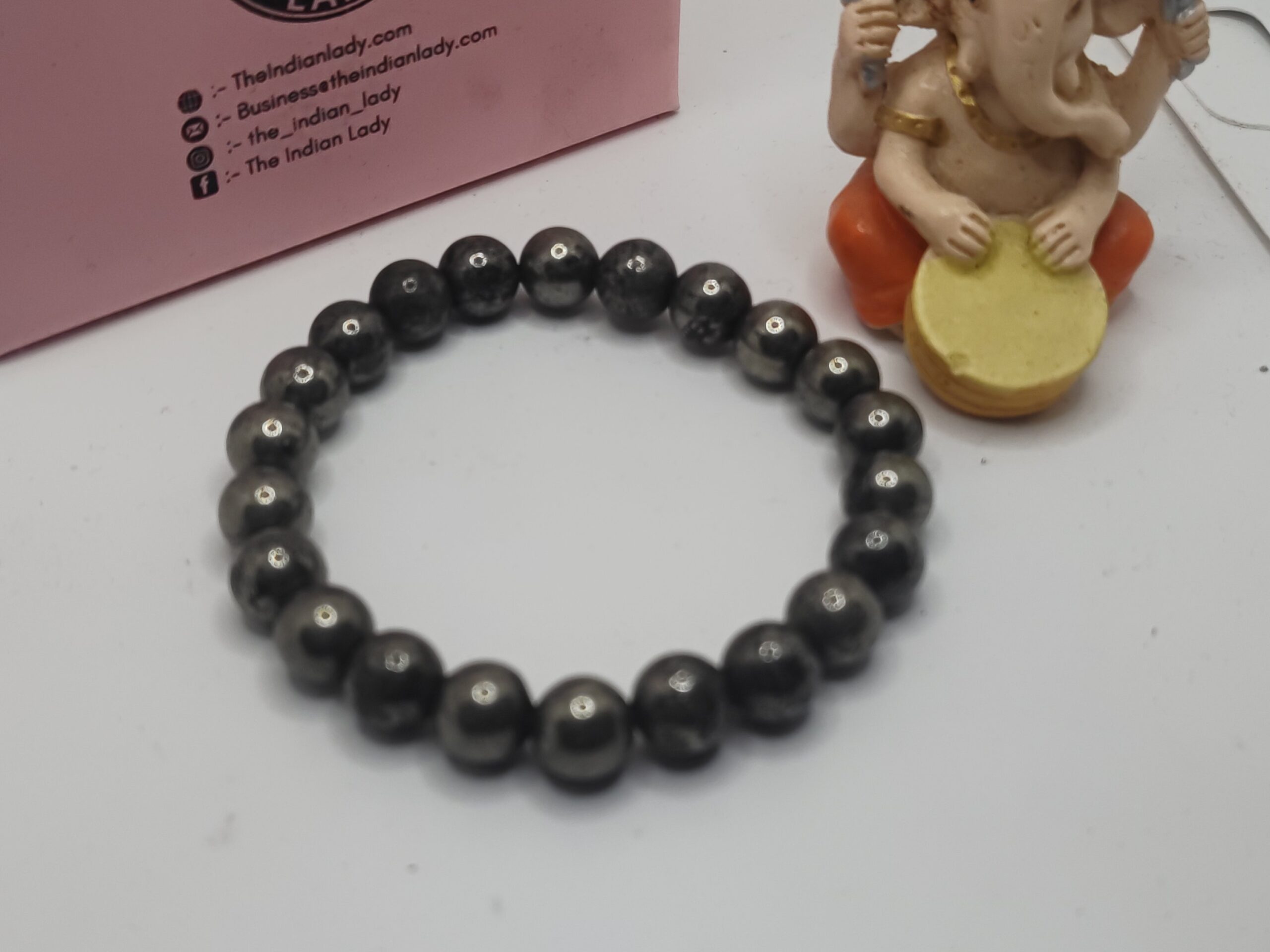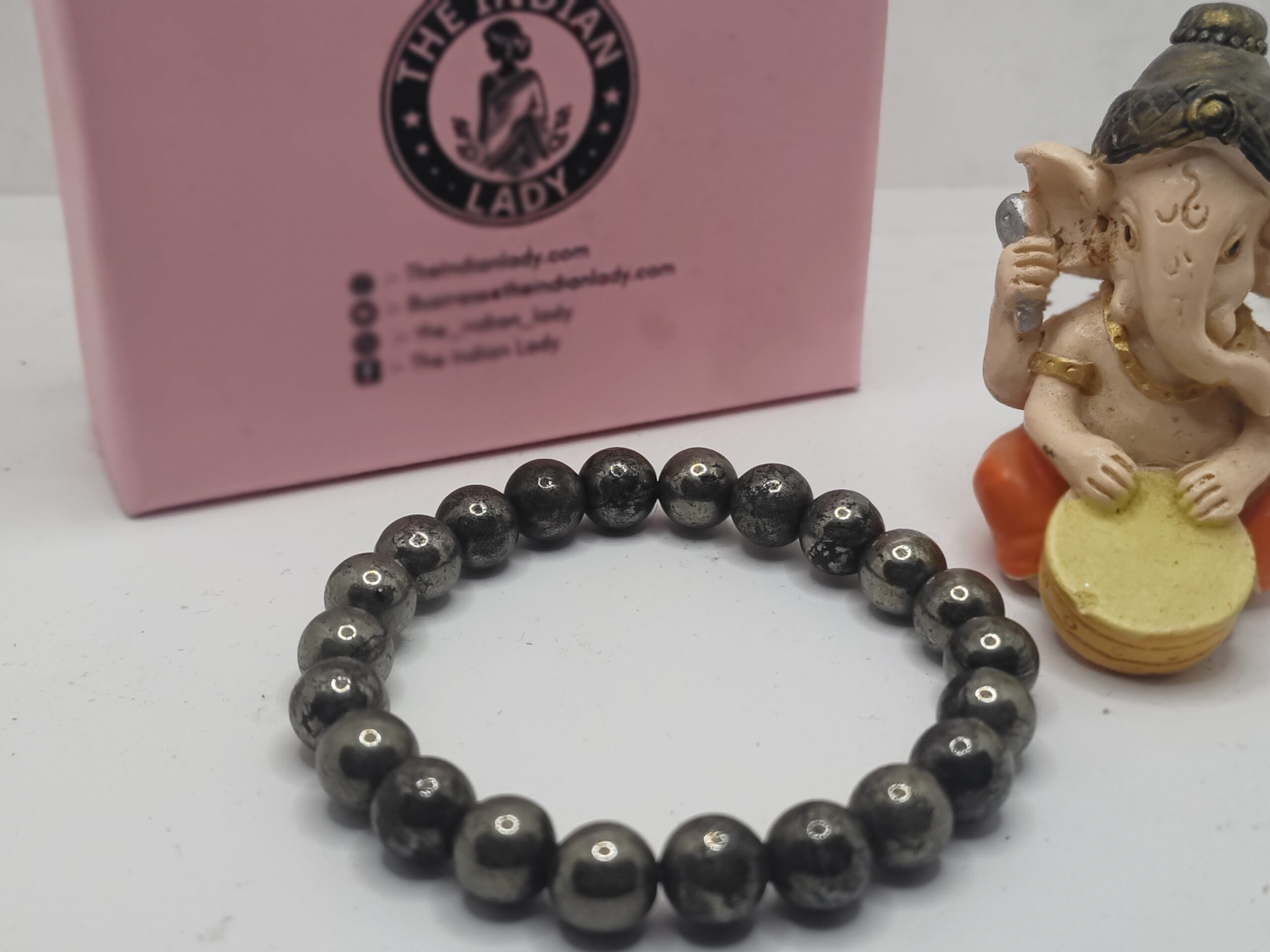 Elevate your style and vibe with our premium Pyrite beaded bracelet, showcased beside the auspicious Ganesha figurine. Pyrite,” radiates abundance, confidence, and positive energy, making it perfect for attracting prosperity and sharpening focus.