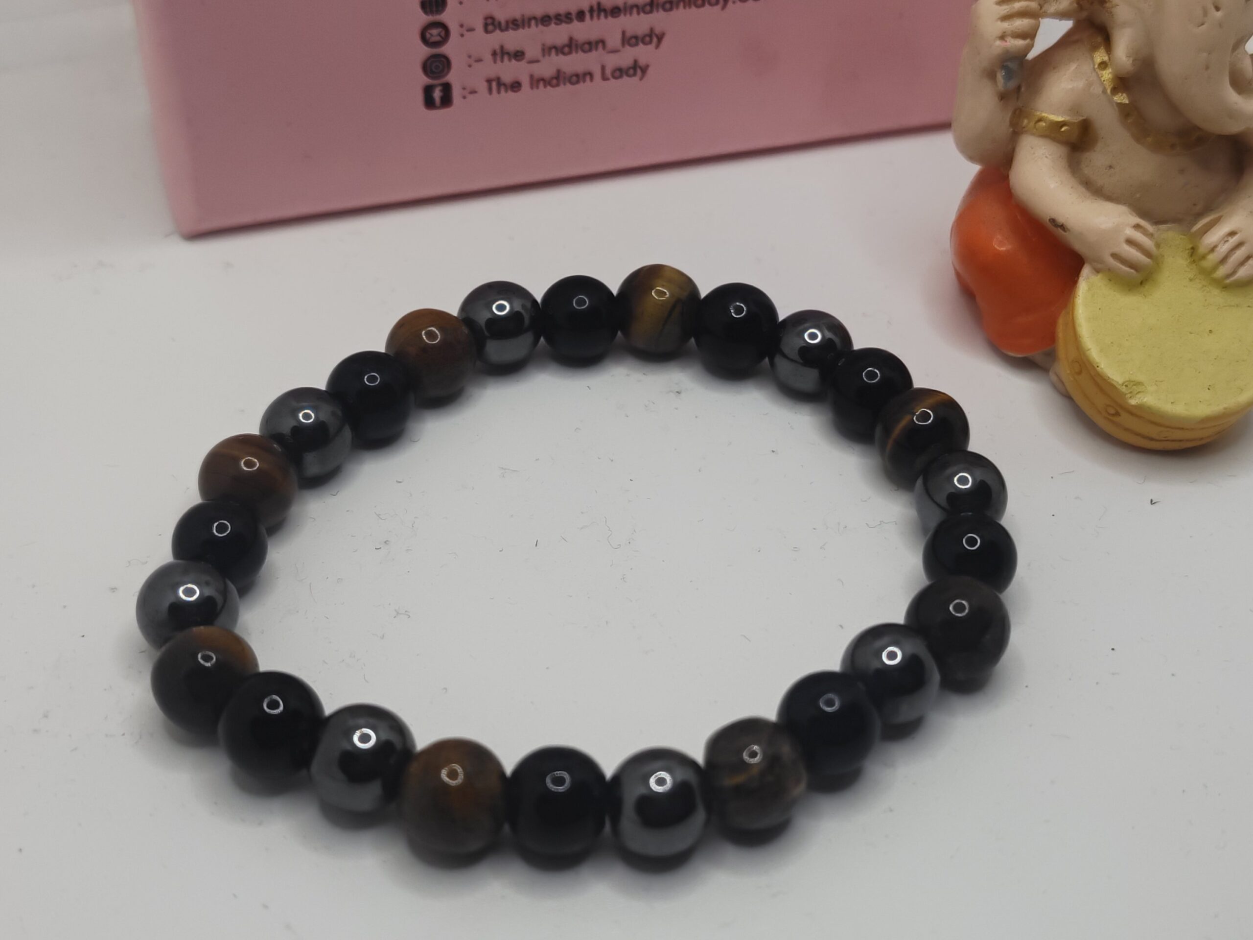 – *Materials*: Premium black onyx, natural tiger’s eye & hematite beads.